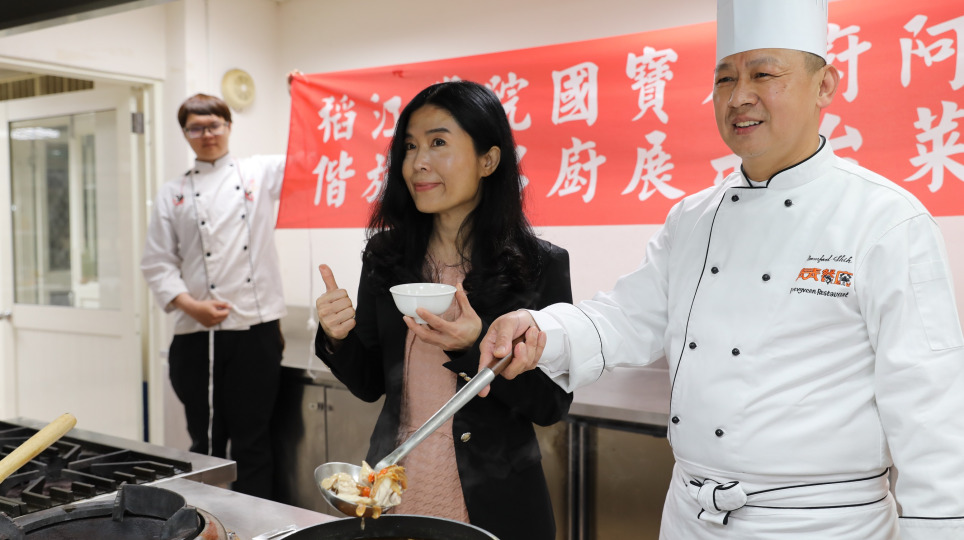 國寶名廚阿發師運用在地食材「御正童仔雞」展廚藝授稻江學子