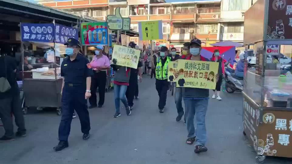學甲夜市防止疫情破口 學甲區公所聯合學甲警分局加強宣導