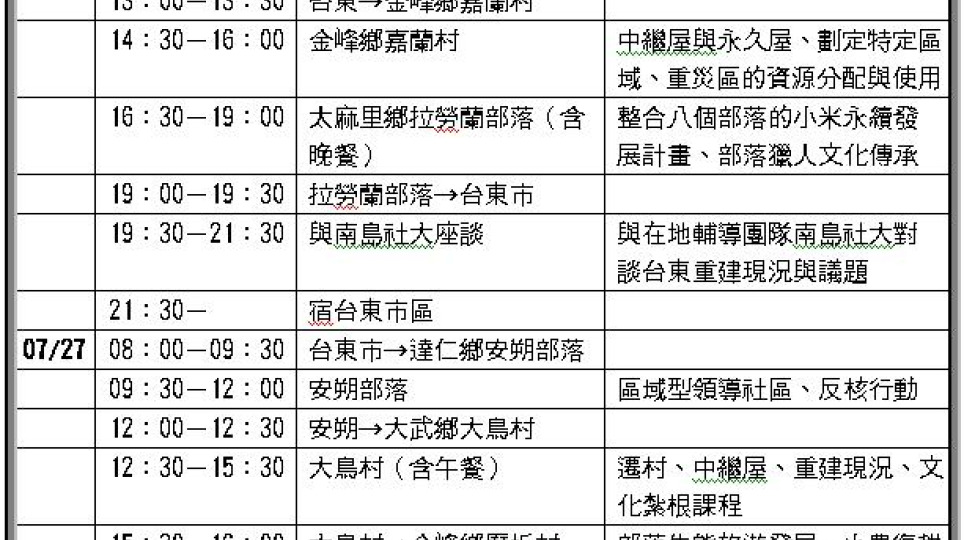 【社造學會敬邀】7/26-27莫拉克風災災後社區重建見學之旅@台東