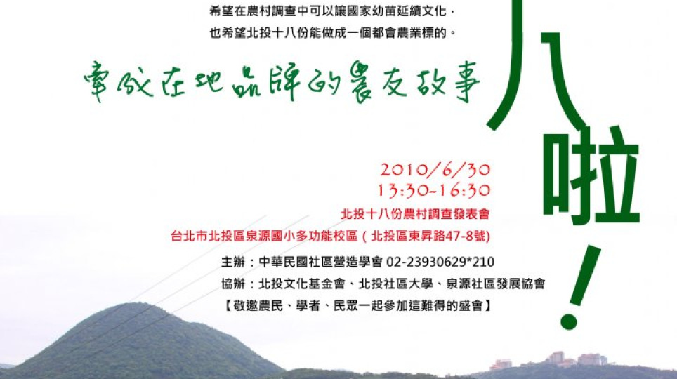 【6/30敬邀】北投十八份農村調查發表會--鬥陣來十八啦!