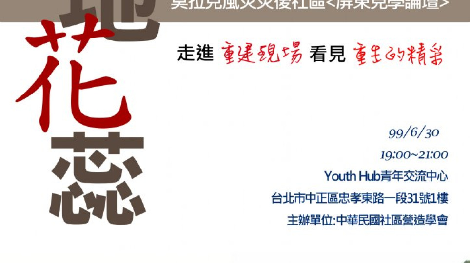 【6/30敬邀】 惡地花蕊-莫拉克風災災後社區論壇