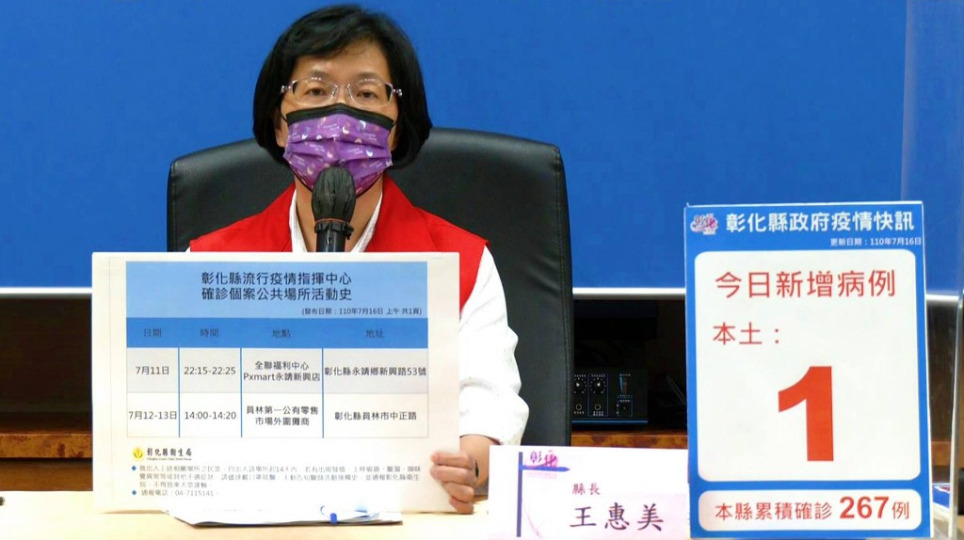 彰化疫情7/16新增1例 彰化確診男南部旅遊史感染源待查