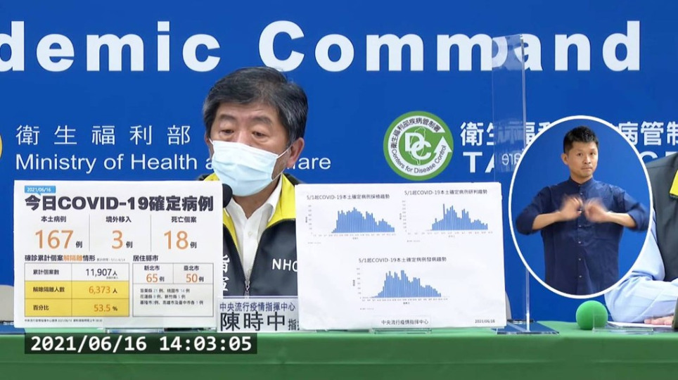 國內疫情6/16新增167本土確診及3境外移入 18人染疫病逝