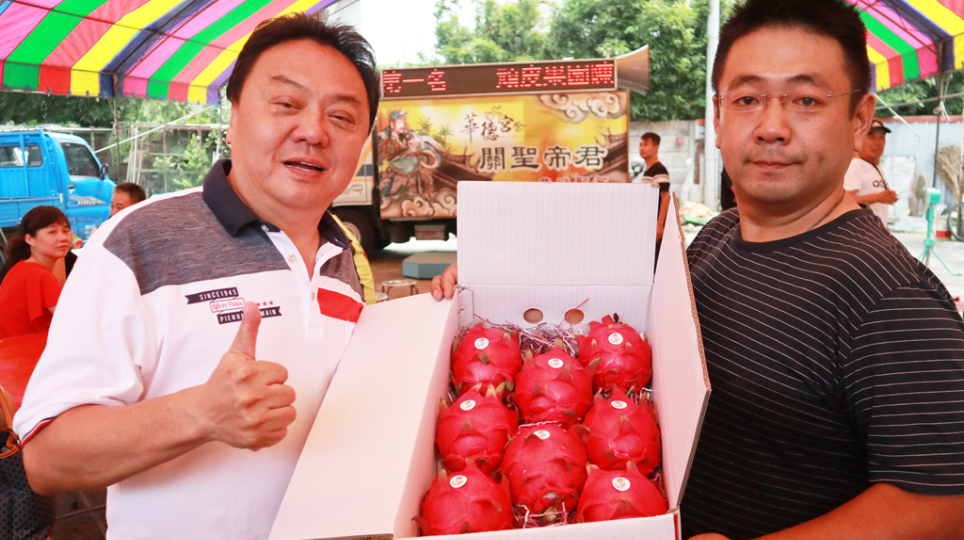 員林假日農夫陳世晋種出冠軍火龍果 游振雄贈匾額祝賀青農