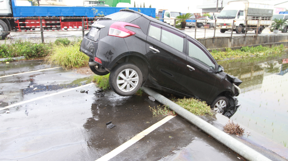 天雨路滑小心行車!駕駛像打保齡球衝撞保齡球館停車場