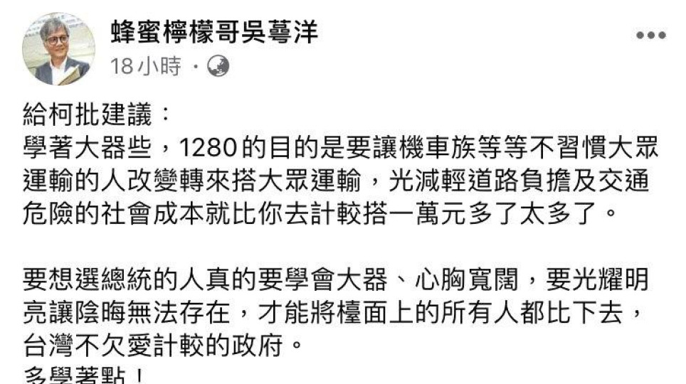 柯查月票用太兇 蜂蜜檸檬哥吳蕚洋:學著大器點!