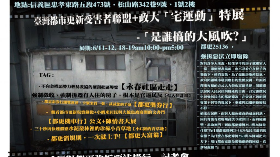敬邀連署聲援 618「都更惡法25-1&36,強拆頭獎到你家」拒絕強徵強拆條款 社區聯合行動─轉貼