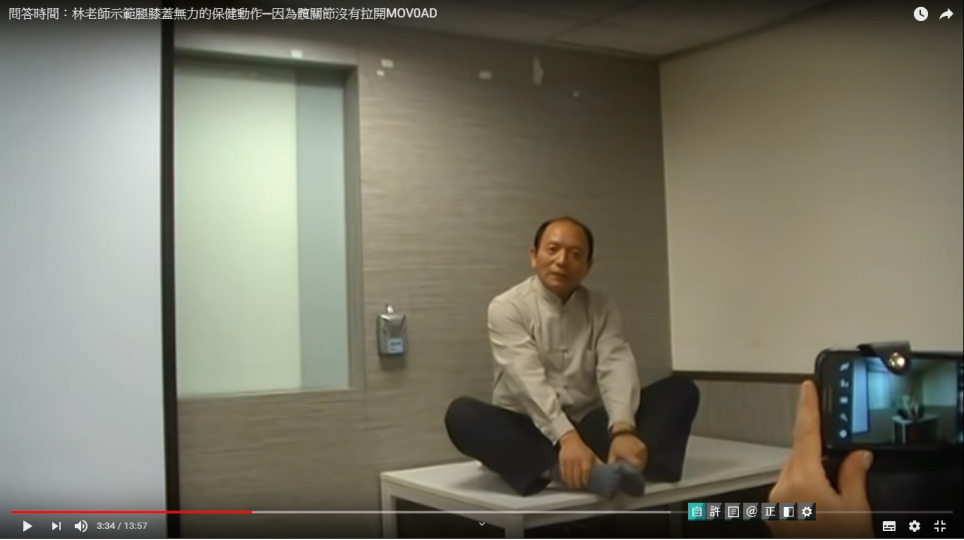 林春福老師示範腿膝蓋無力的保健動作─因為髖關節沒有拉
