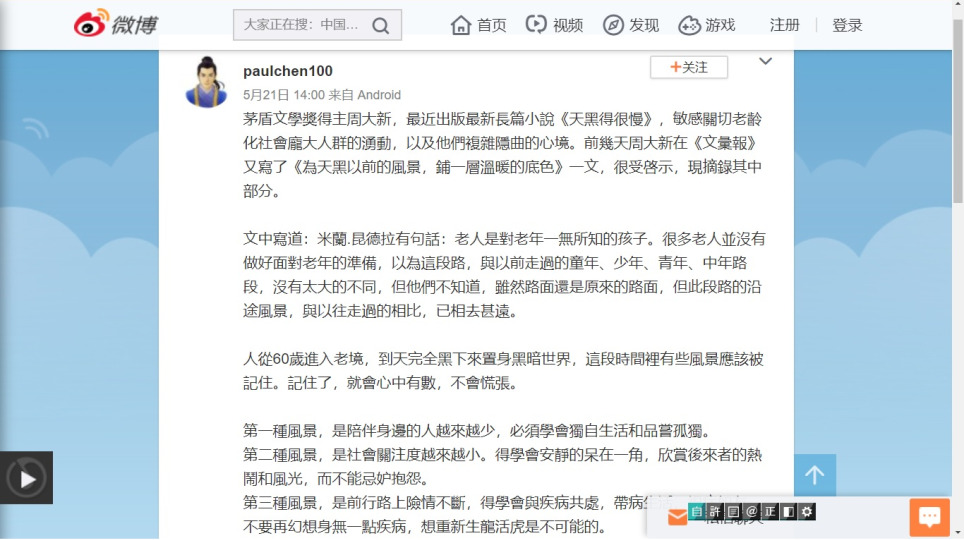樂觀不要為小事抓狂 問題來源:外籍幫手主廚造成的衝突不斷 處理方式:老媽外食請她只處理自己吃的飯菜 『1420名百岁寿星大调查!只有一个共性,不是饮食,不是运动,而是…』讀後感