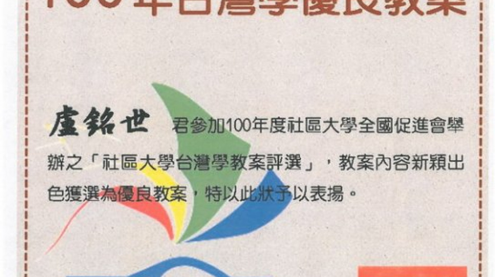 社區大學100年台灣學優良教案評選獲獎