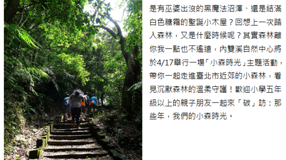 內雙溪自然中心 4/17「小森時光」,探訪森林御守護
