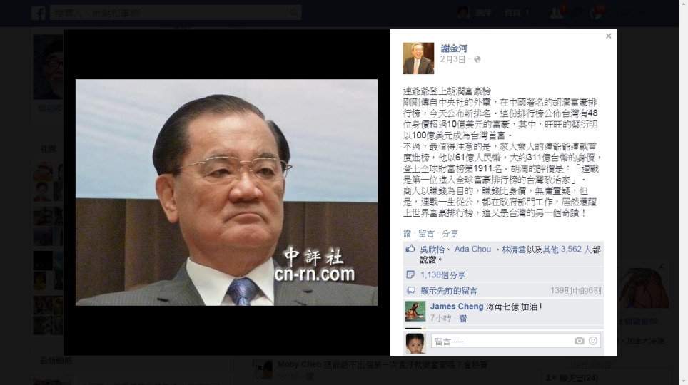 台灣最不需要的奇蹟:政治人物進入世界富豪排行榜 胡潤研究院:印度、台灣和法國是富豪人數增長最快的地區。