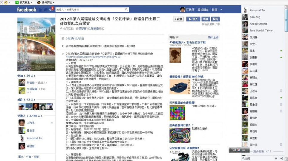 2012/10/7 第 六屆環境論文研討會「空氣汙染」暨環保鬥士鐘丁茂教授紀念音樂會 由蔡智豪和生態學會發起