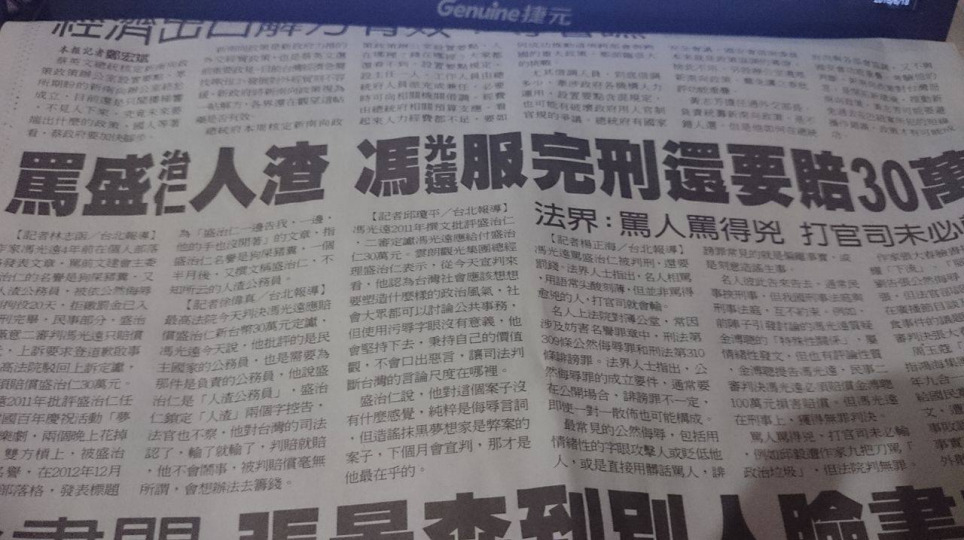 盛治仁提告馮光遠妨害名譽求償50萬和登報道歉 法院判賠30萬外免道歉