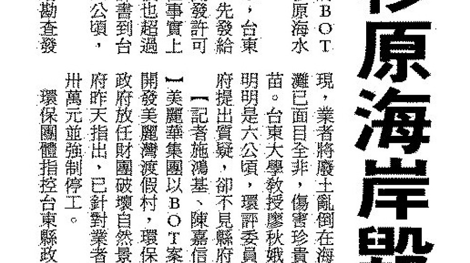 3,529 0 •環評無效最終判決:台東縣府及美麗灣敗訴