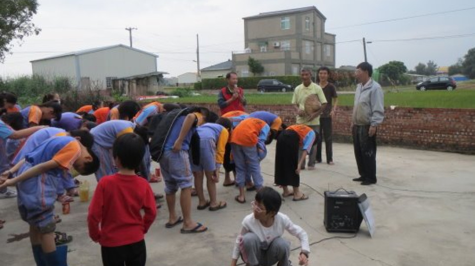 「今日播下的秧苗 明日飄香的稻浪 永誌不忘 我的故鄉」---菁寮國小割稻