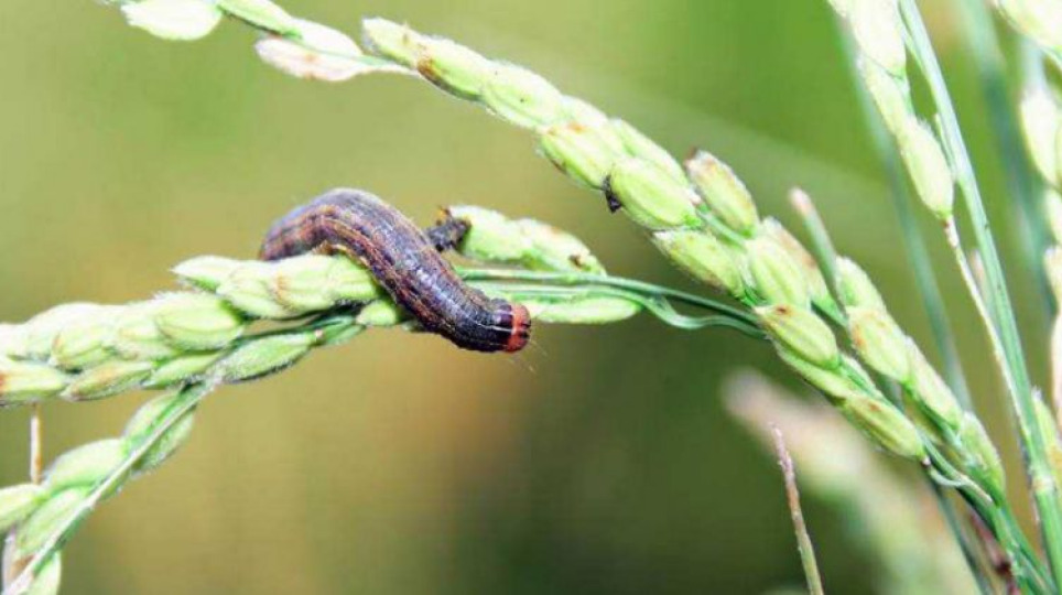 「分秘夜蛾」幼蟲啃食稻葉