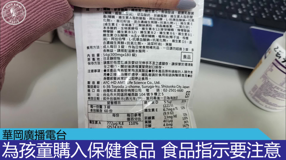 為孩童購入保健食品 食品指示要注意