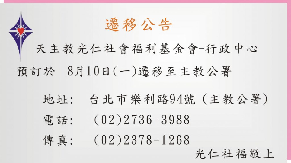 基金會行政中心遷移公告