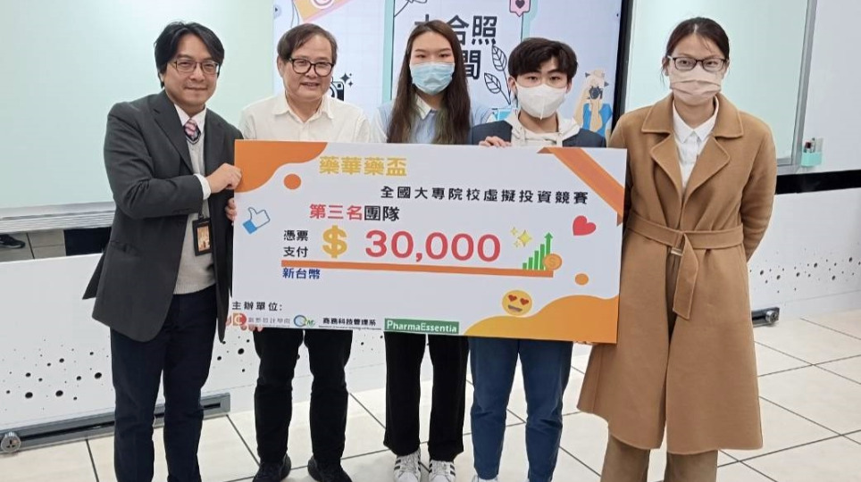 龍華科大遊戲系鄭依宸邀好友組團 大專虛擬投資競賽獲第三名