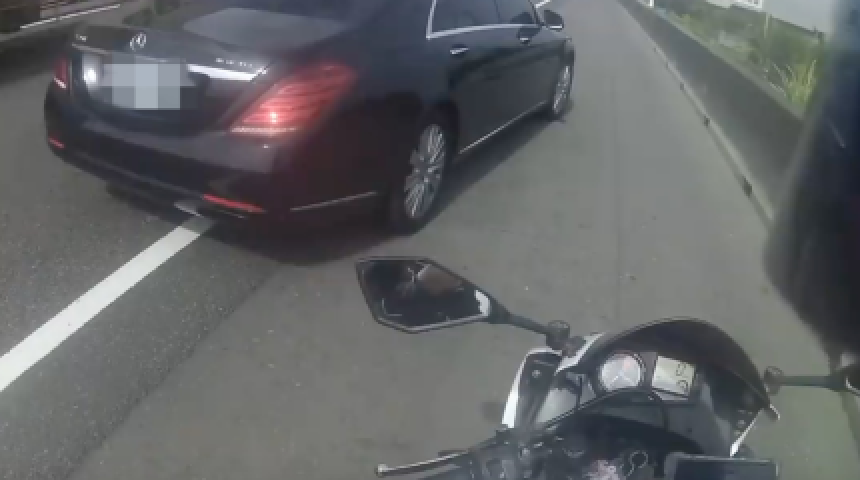 女騎士誤闖國道奔馳 賓士轎車霸氣逼車拔鑰匙