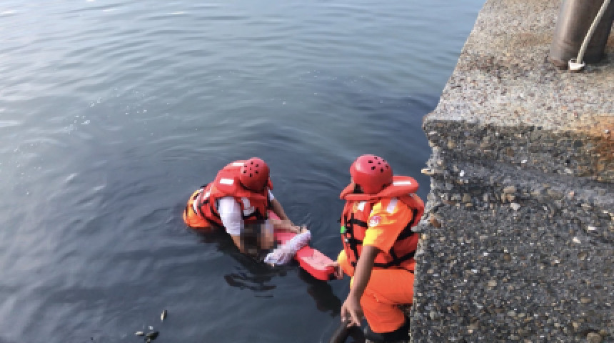 王功大排女子輕生跳海 海巡警消成功救援
