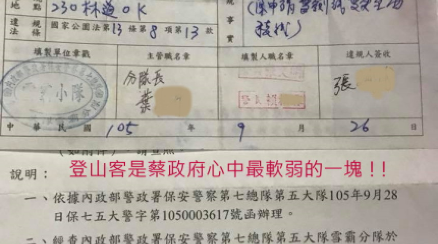 登山行為光明磊落 何以保警要「奮力後追並喊話」 這在幹什麼?