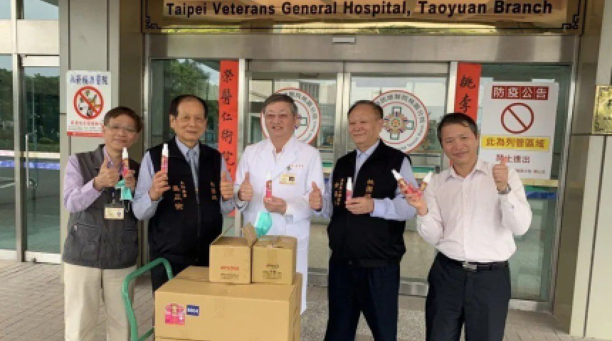 贈北榮桃分院 慈護宮提供684瓶「桃園媽茶樹酒精消毒液」!
