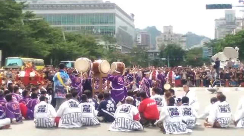 ◎為臺、日兩方祈福撞轎之日本太鼓