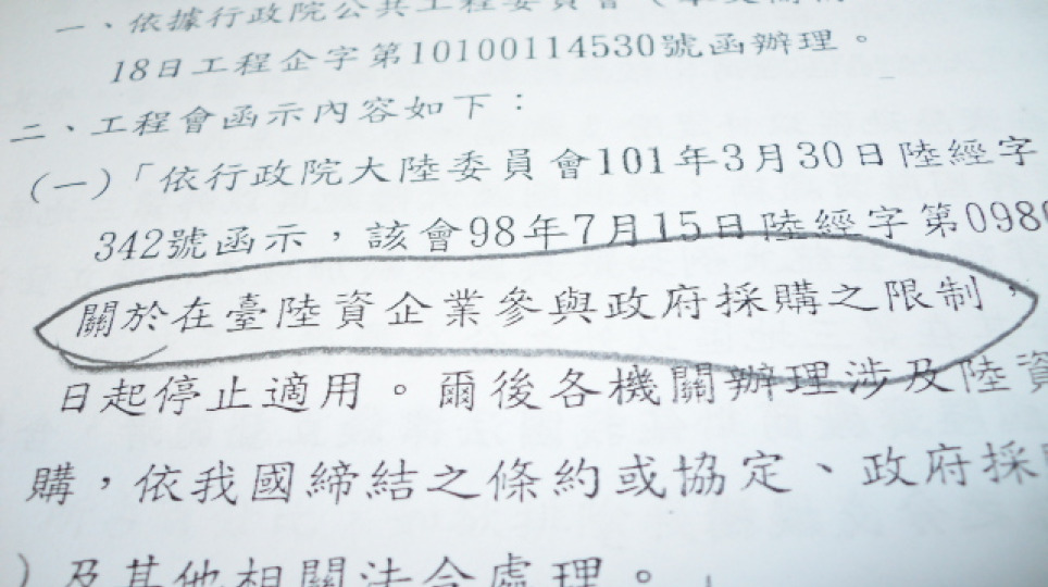 關於在臺陸資企業參與政府採購之限制