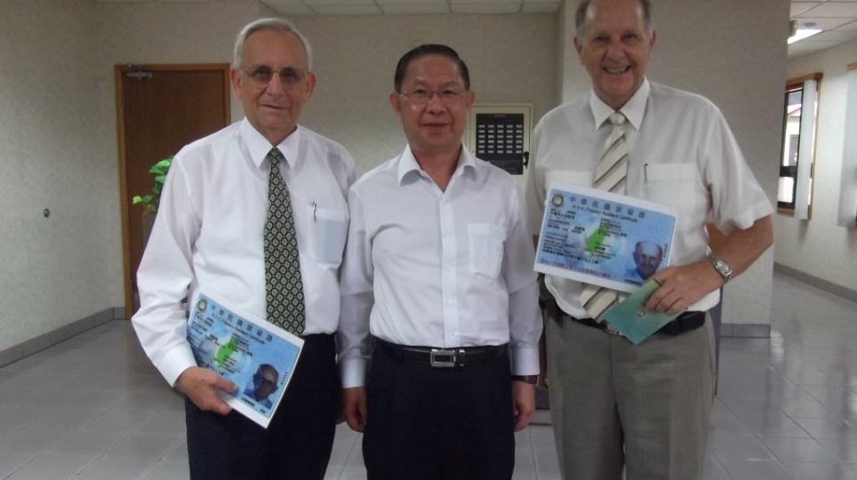 聖經書社雷諾思及彭宜恩兩位神職人員在臺奉獻近半世紀,移民署副署長張琪親頒馬偕永居證表達感謝