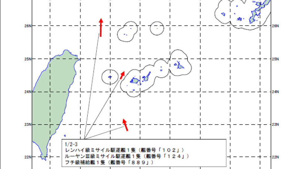 日防衛省:三艘共艦航經台灣東部海域 日二千噸級艦監控