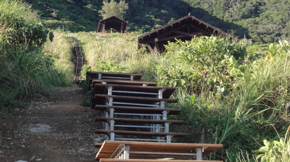 蘭嶼大天池步道工程復工,450公尺步道,共設置2大、2小涼亭供登山者休憩