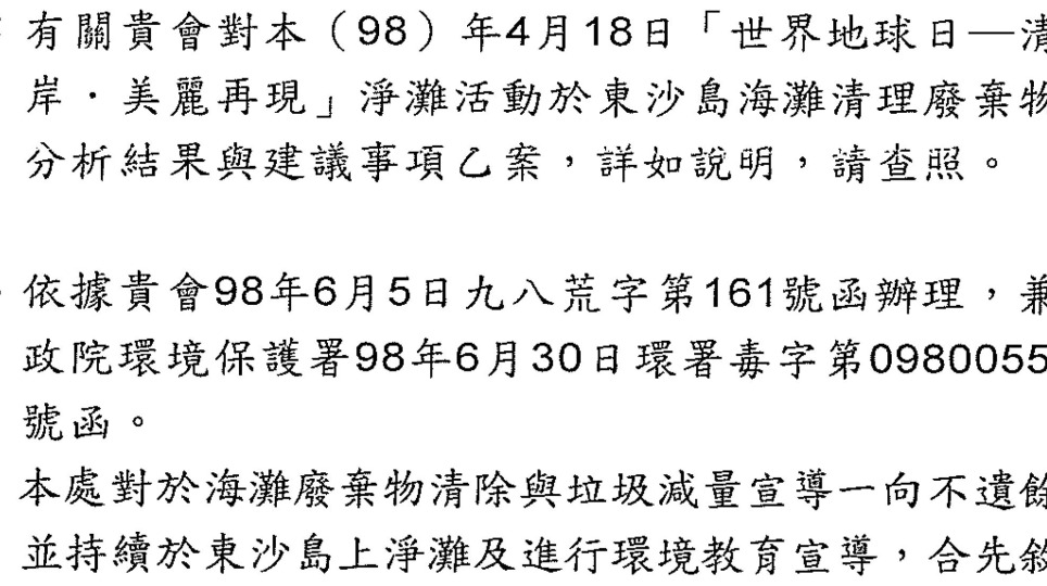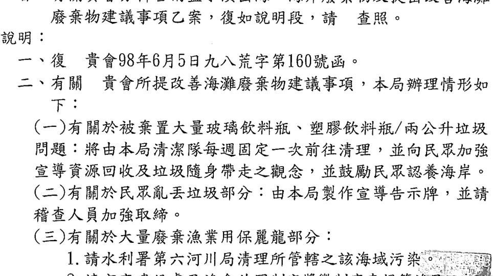 台南市環保局的回應~2009地球日台南海廢資料