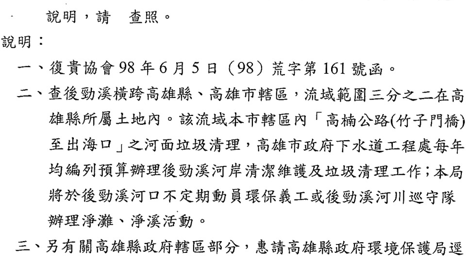高雄市環保局的回應~2009高雄後勁溪海廢資料