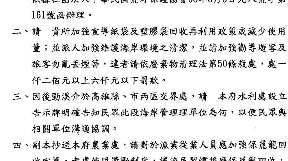 高雄縣環保局的回應~2009地球日高雄後勁溪海廢資料