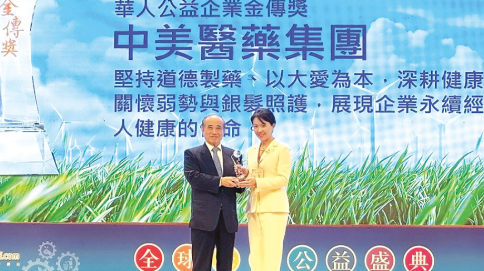 中美醫藥獲華人公益企業金傳獎 善行延續健康與愛