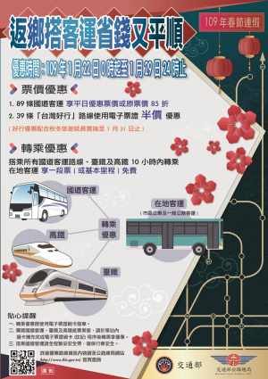 109年春節返鄉出遊搭客運 省時、省錢好康優惠多