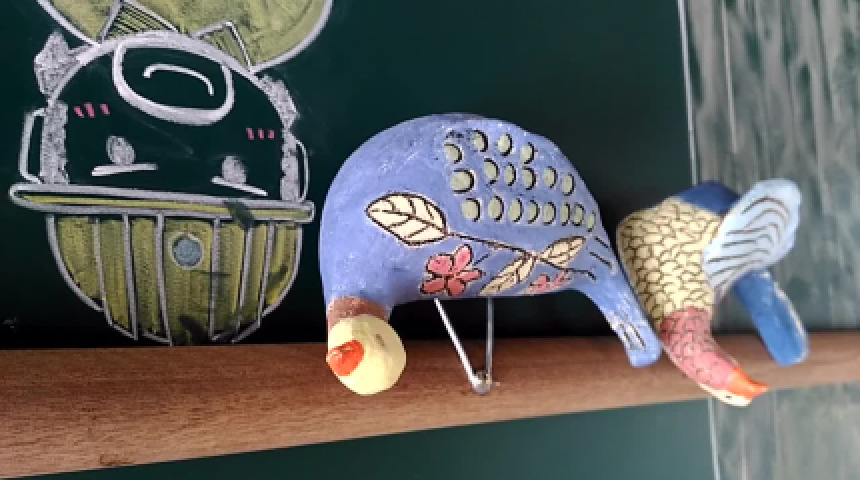 台南市善化區東勢寮社區及楊慧華工作室於善化火車站 展示里民陶鳥創作