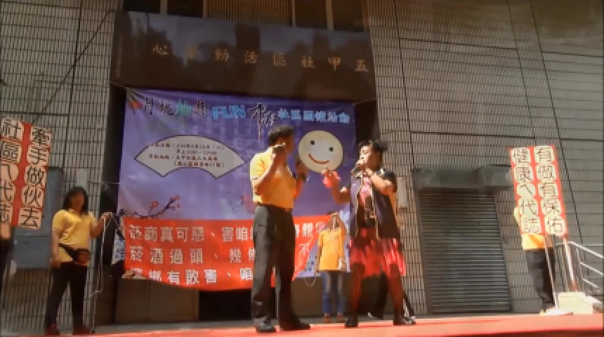 演戲加擺攤,菸酒檳退散!─衛促會在高雄市鳳山區國富里舉辦戲說菸酒檳防制倡議活動