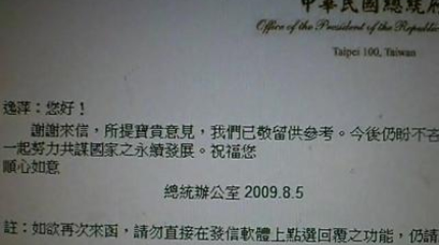 總統先生回信了─總統先生我想研究BOT流行趨勢(把我們BOT吧!─信義綠鑽森林公園系列報導十一)