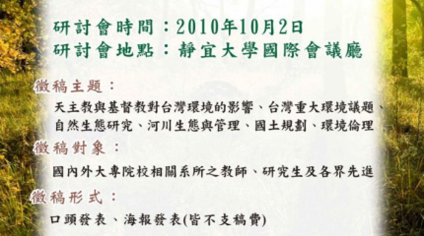 提高關懷生命的尺度,使萬物眾生受到庇蔭,靜宜大學2010年第四屆環境論文研討會
