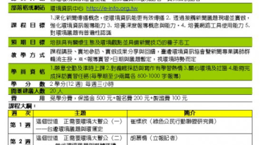 大安社大《環境大聲公-公民記者種子培訓》─轉貼
