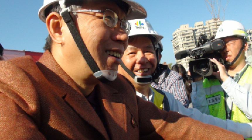 20160209台北市長柯文哲視察忠孝橋引道拆除進度 進入工地請戴安全帽
