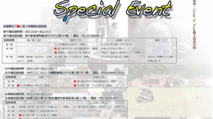 2012台灣地方志影展全台巡迴放映(10/26-11/18)開跑囉