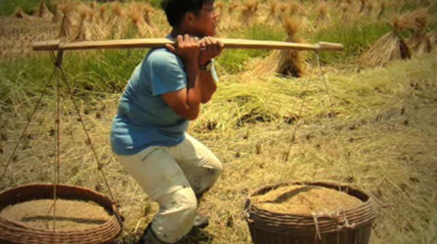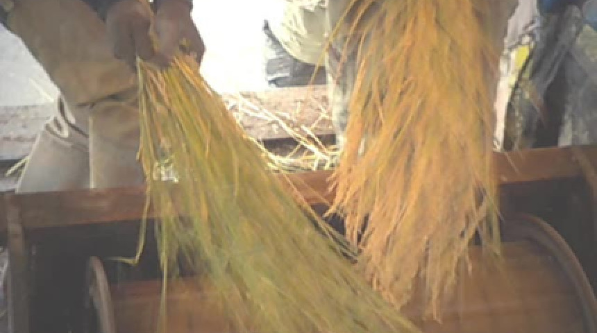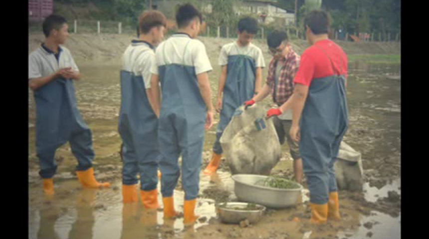 玩中學手工收割自然農法黒米