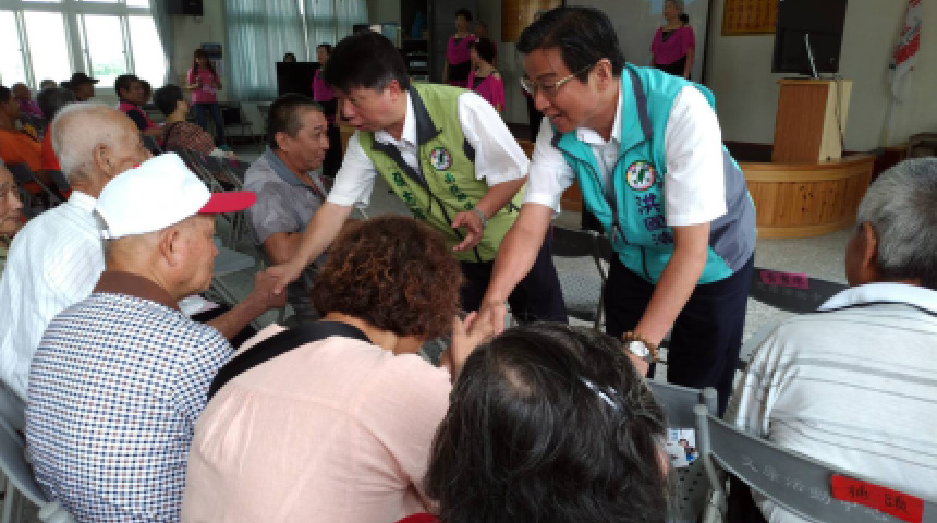 蔡宜助、張志銘挺各自縣長候選人林明溱、洪國浩,社區致詞針鋒相對但不傷和氣