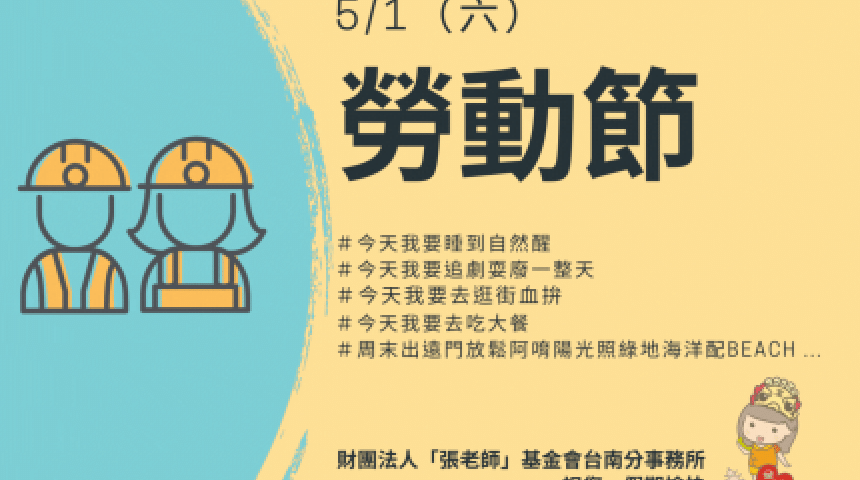 五一勞動節快樂!台南「張老師」:勞工朋友們辛苦了