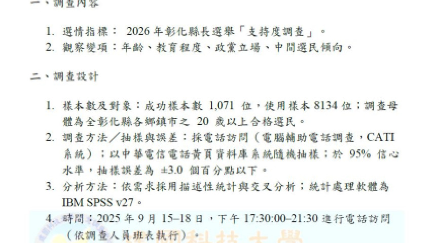 (((獨家)))彰化2026選戰提前開打!民調揭露:綠營穩居領先 藍營陷低迷恐成陪跑