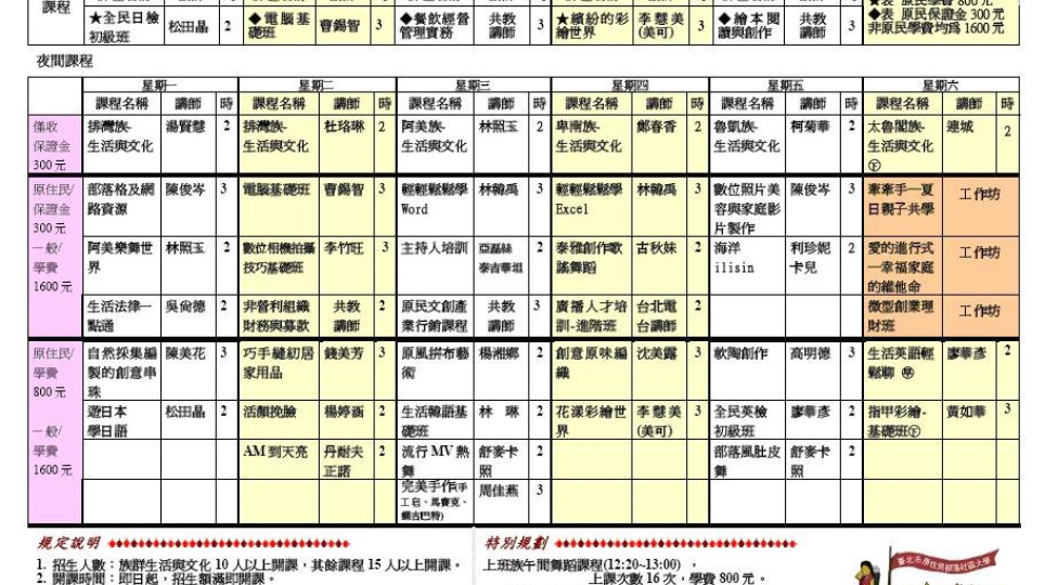 臺北市原住民部落社區大學最新課程出爐了!